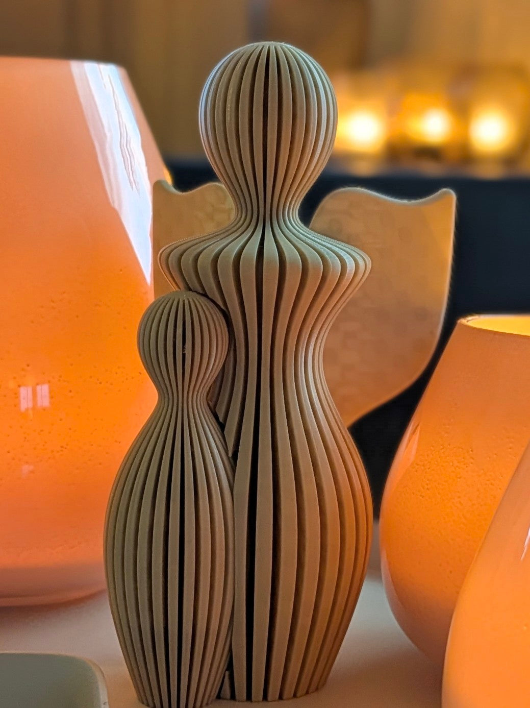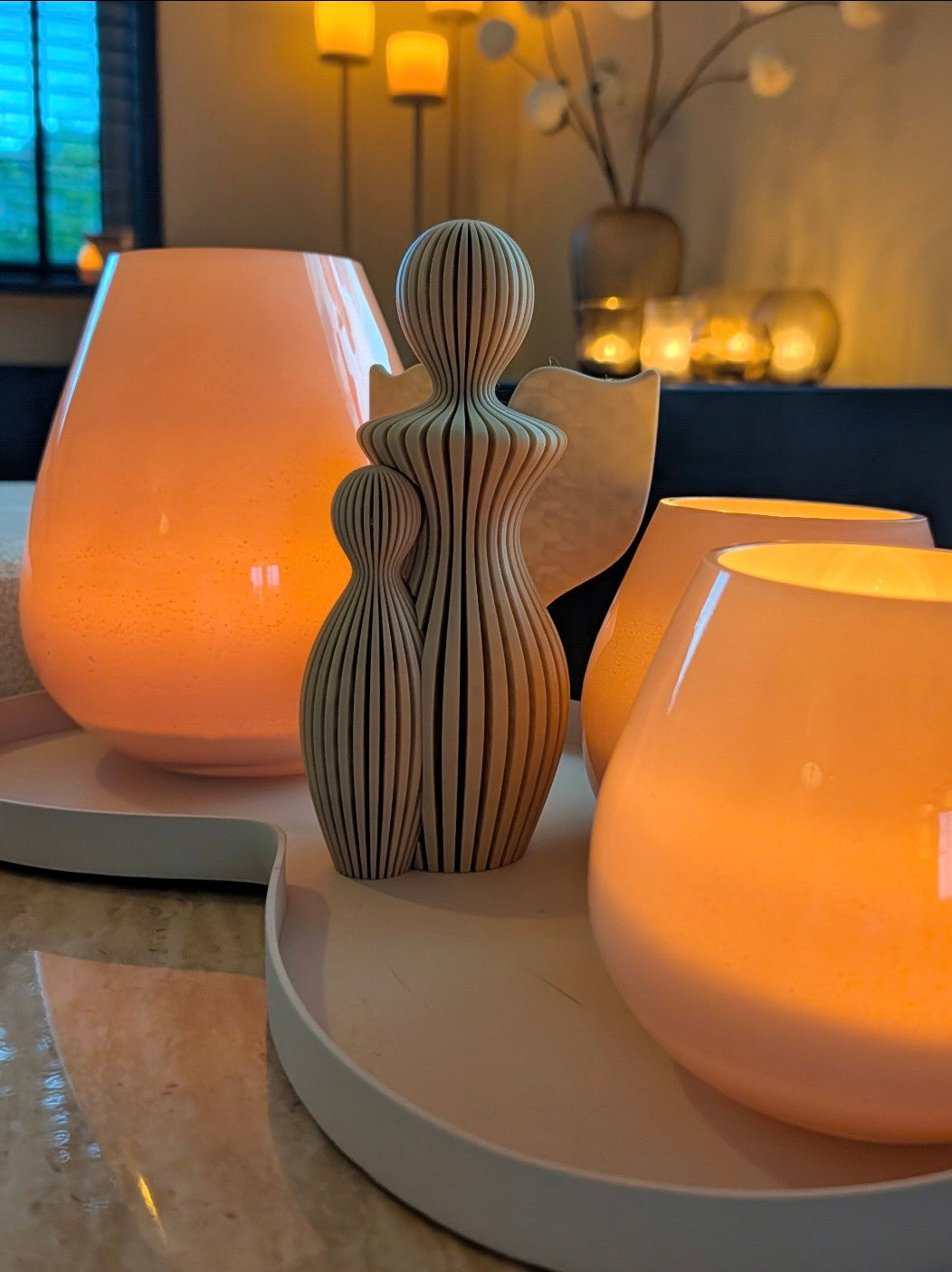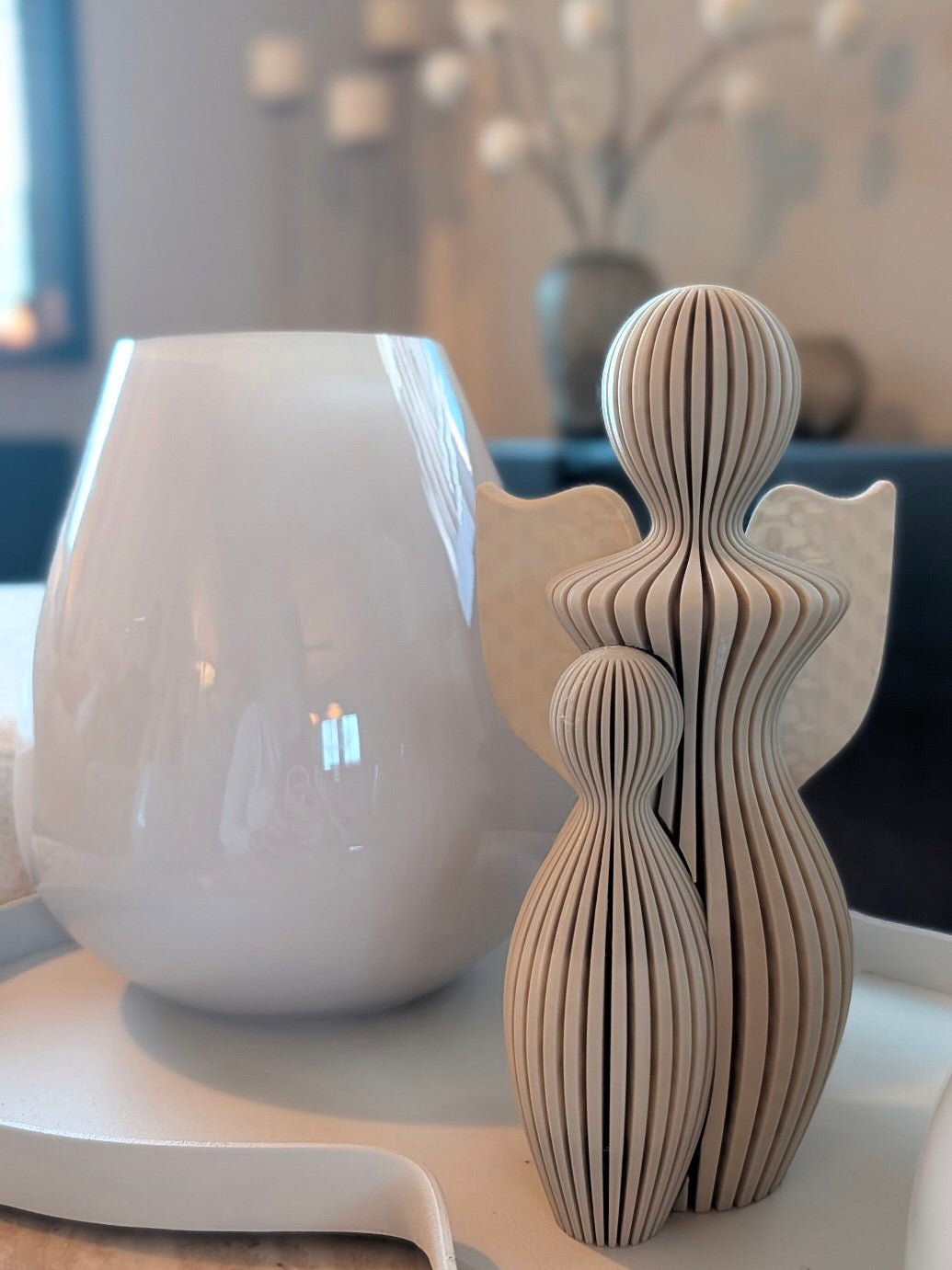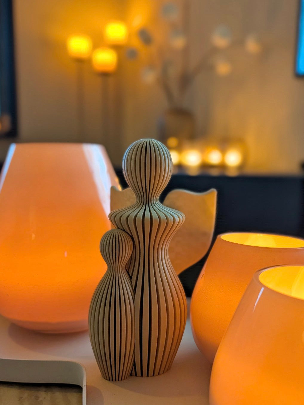 Breng een unieke, warme sfeer in huis deze kerst met deze prachtige set van twee 3D-geprinte decoratieve figuren.