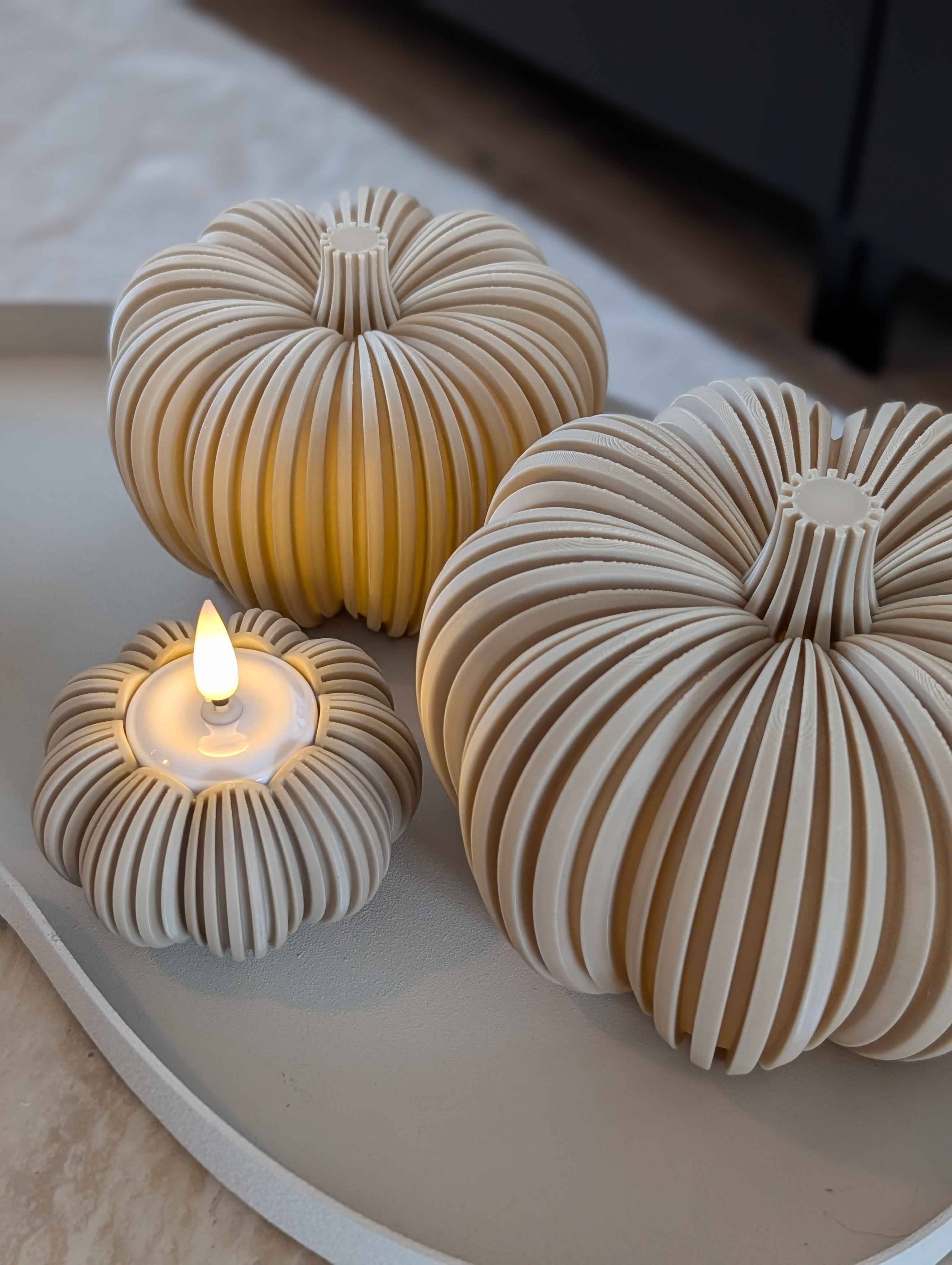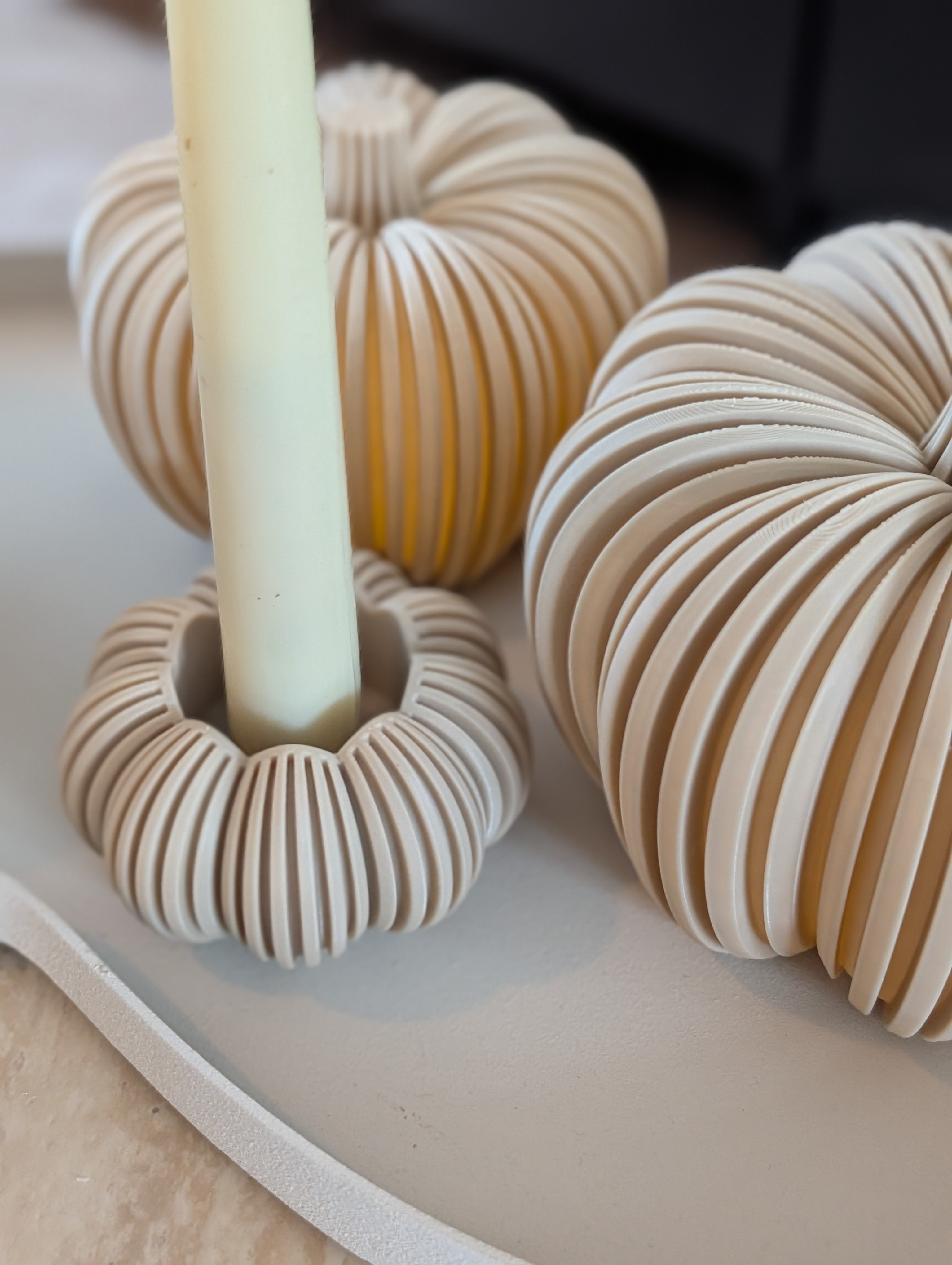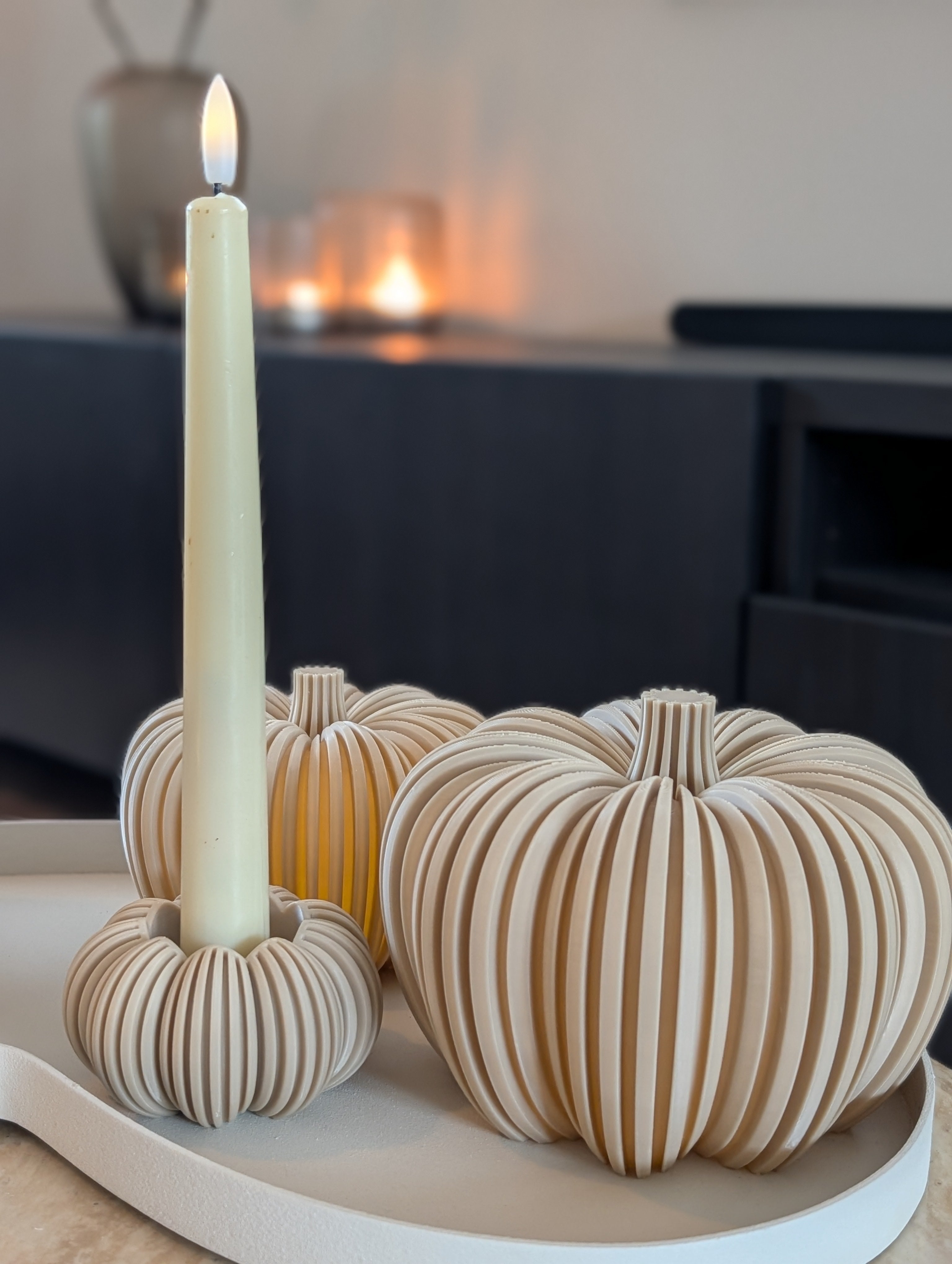 Breng de gezellige sfeer van de herfst in huis met dit unieke, 3D-geprinte pompoen kaarsenhouder. Perfect voor het creëren van een warme en moderne uitstraling, het hele jaar door!