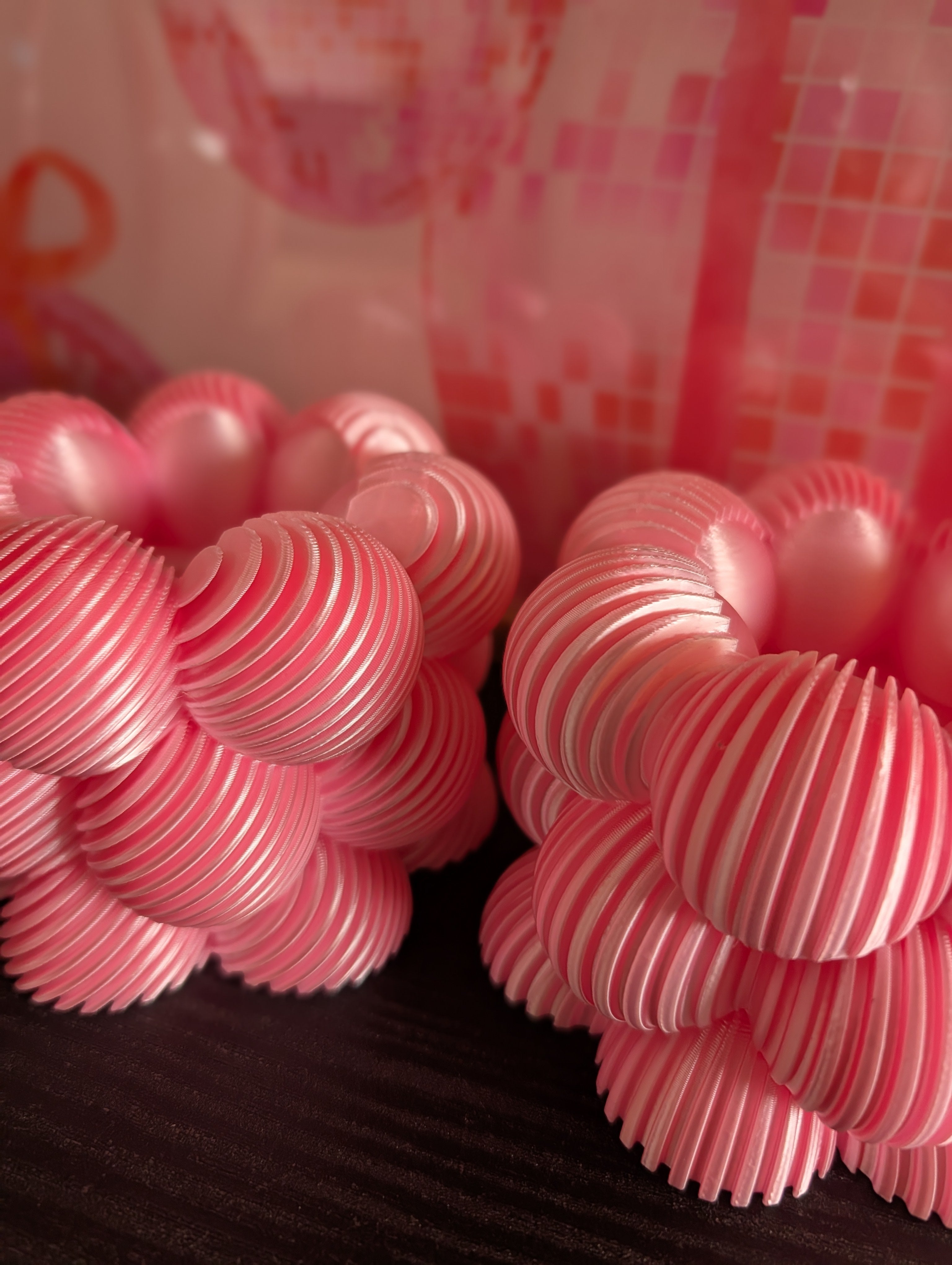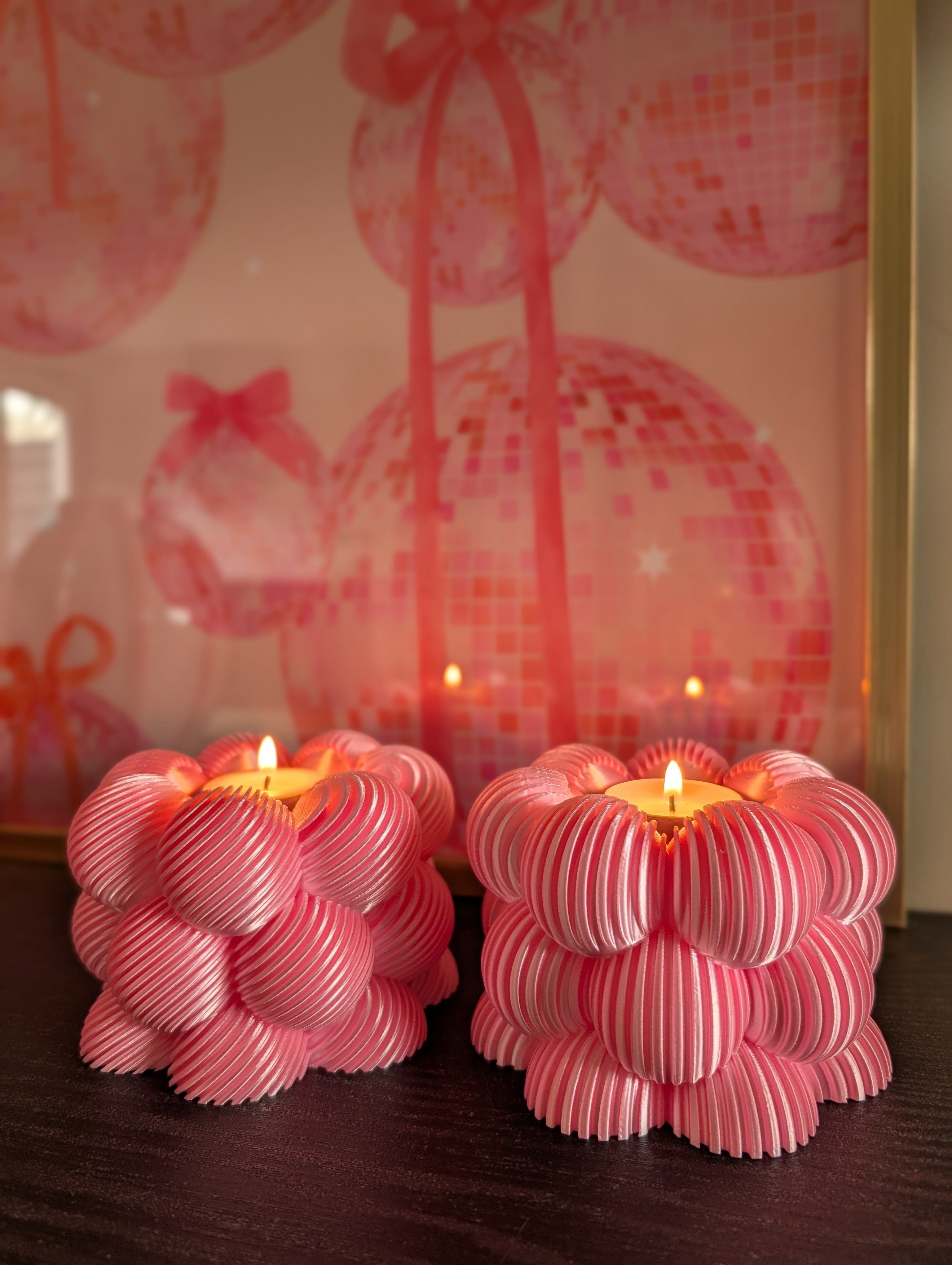 Deze opvallende roze houders zijn een feest voor het oog dankzij hun fascinerende, 3D-geprinte design met een gelaagde, 'bubble'-structuur. De Linea-set is speciaal ontworpen om de warme gloed van LED waxinelichtjes prachtig te accentueren, waardoor een sfeervol en veilig lichteffect ontstaat.
