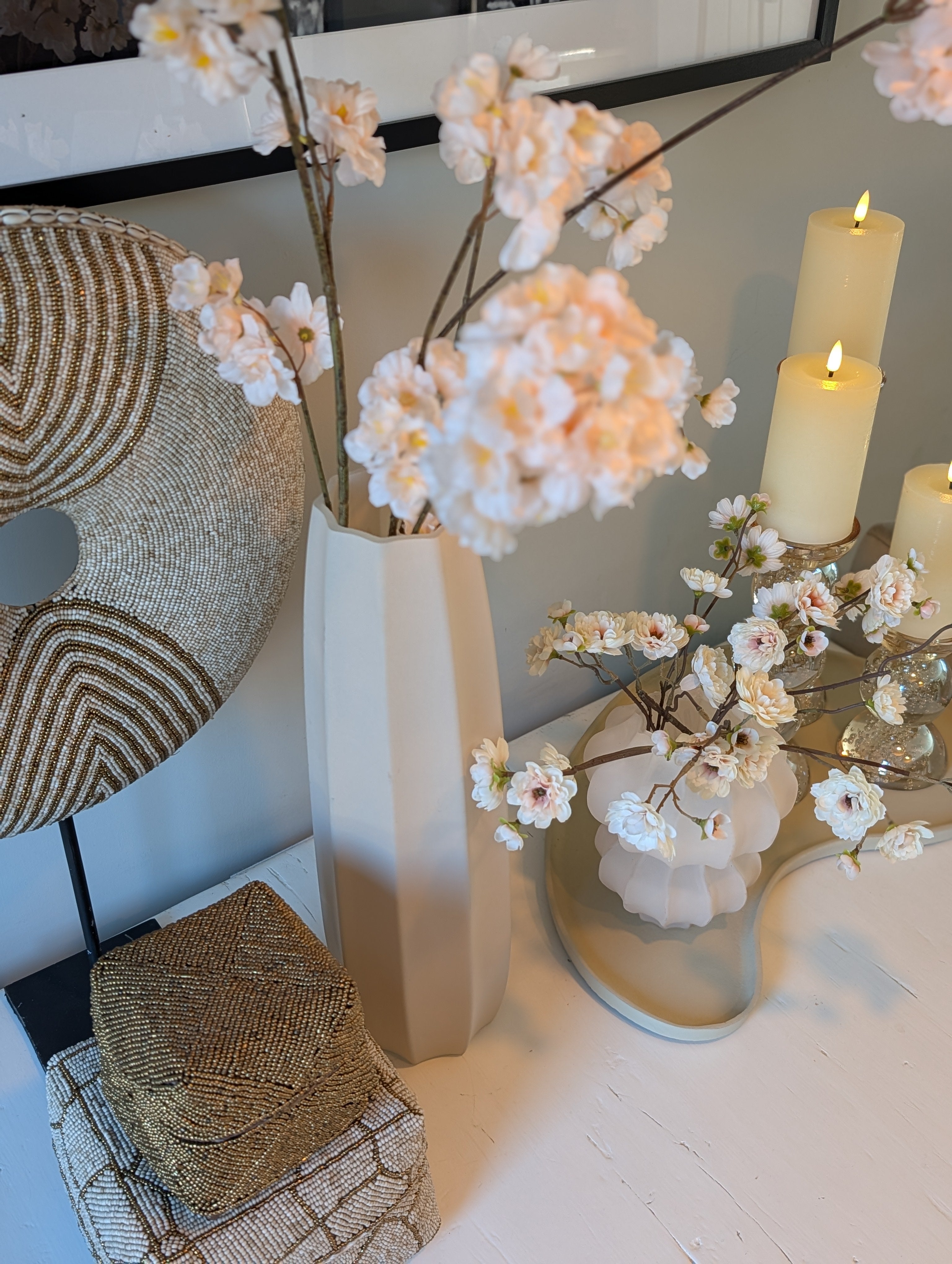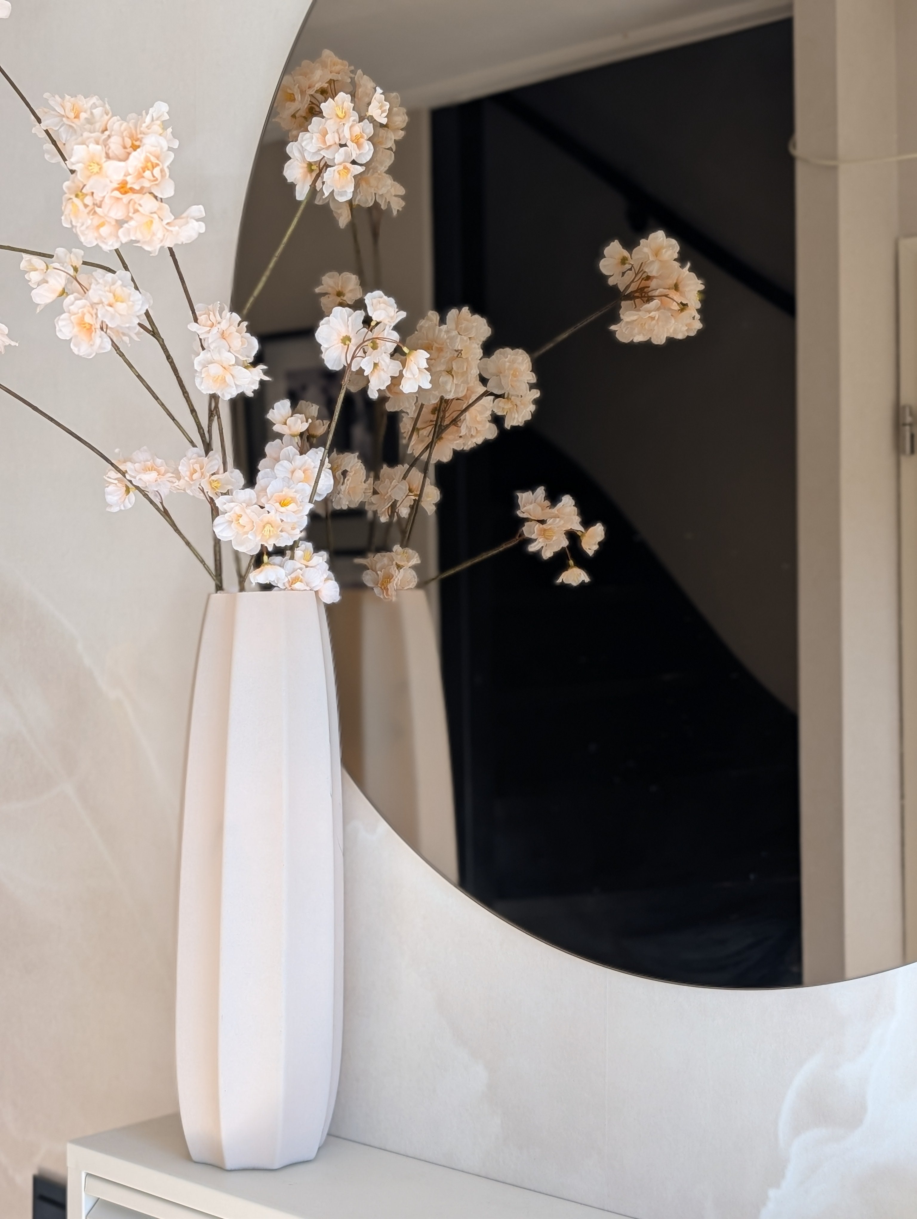 Deze indrukwekkende vaas van Mica Decorations combineert een modern lijnenspel met de elegantie van glas. Met een hoogte van 43 cm is het een echte blikvanger die stabiliteit biedt aan grote boeketten of zware bloesemtakken. Het glas is afgewerkt met een matte laag, waardoor de vaas een zachte, satijnachtige uitstraling heeft die prachtig speelt met het binnenvallende licht.