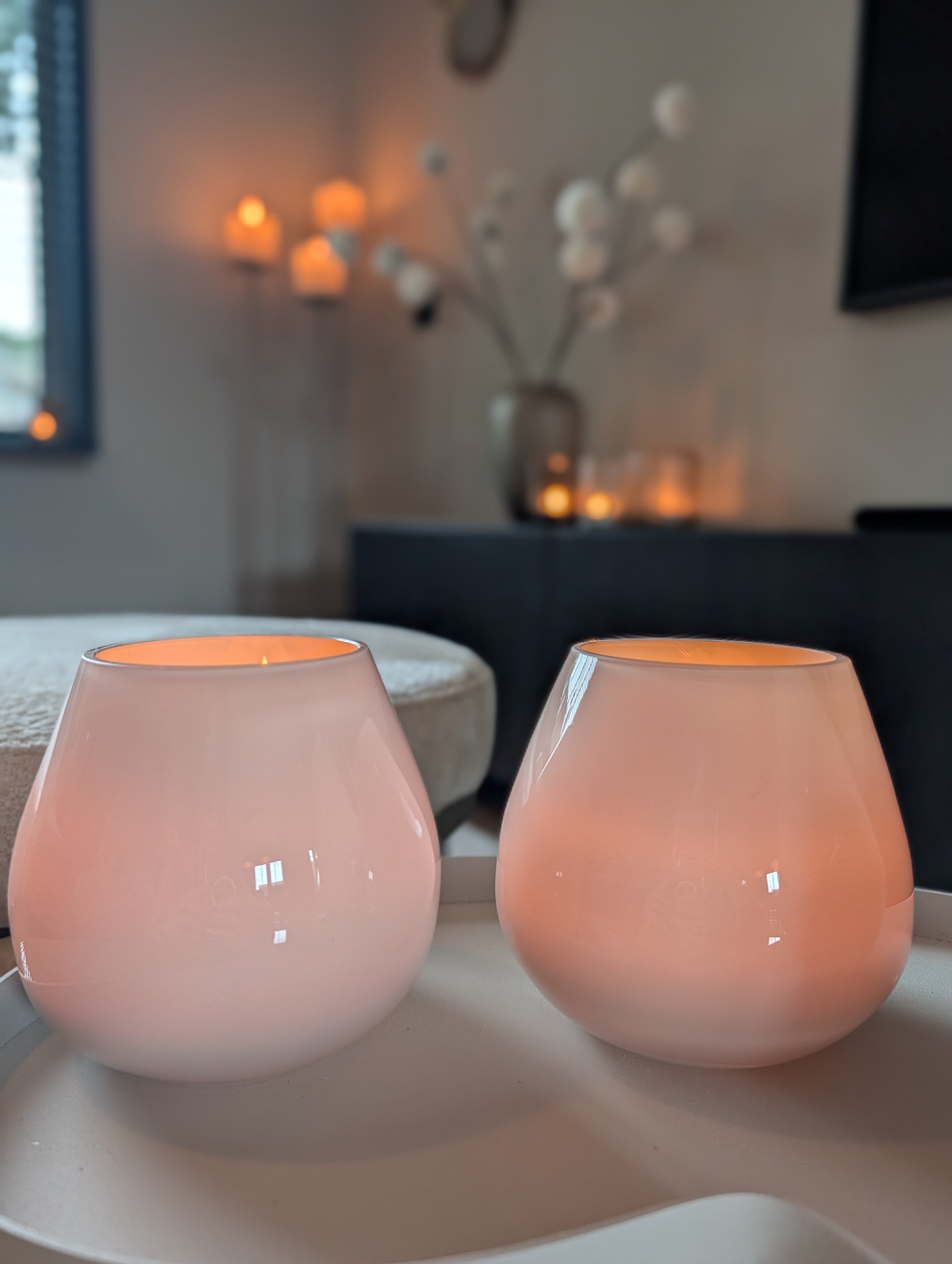 Creëer een intieme en warme sfeer met deze elegante set van twee glanzende windlichten van Vase The World. Dit bekende merk staat garant voor kwalitatief glaswerk met een verfijnde afwerking. De ronde, organische vorm en het glanzende, doorschijnende glas zorgen voor een prachtige, diffuse en uitnodigende gloed wanneer u er een (LED) kaars in plaatst.